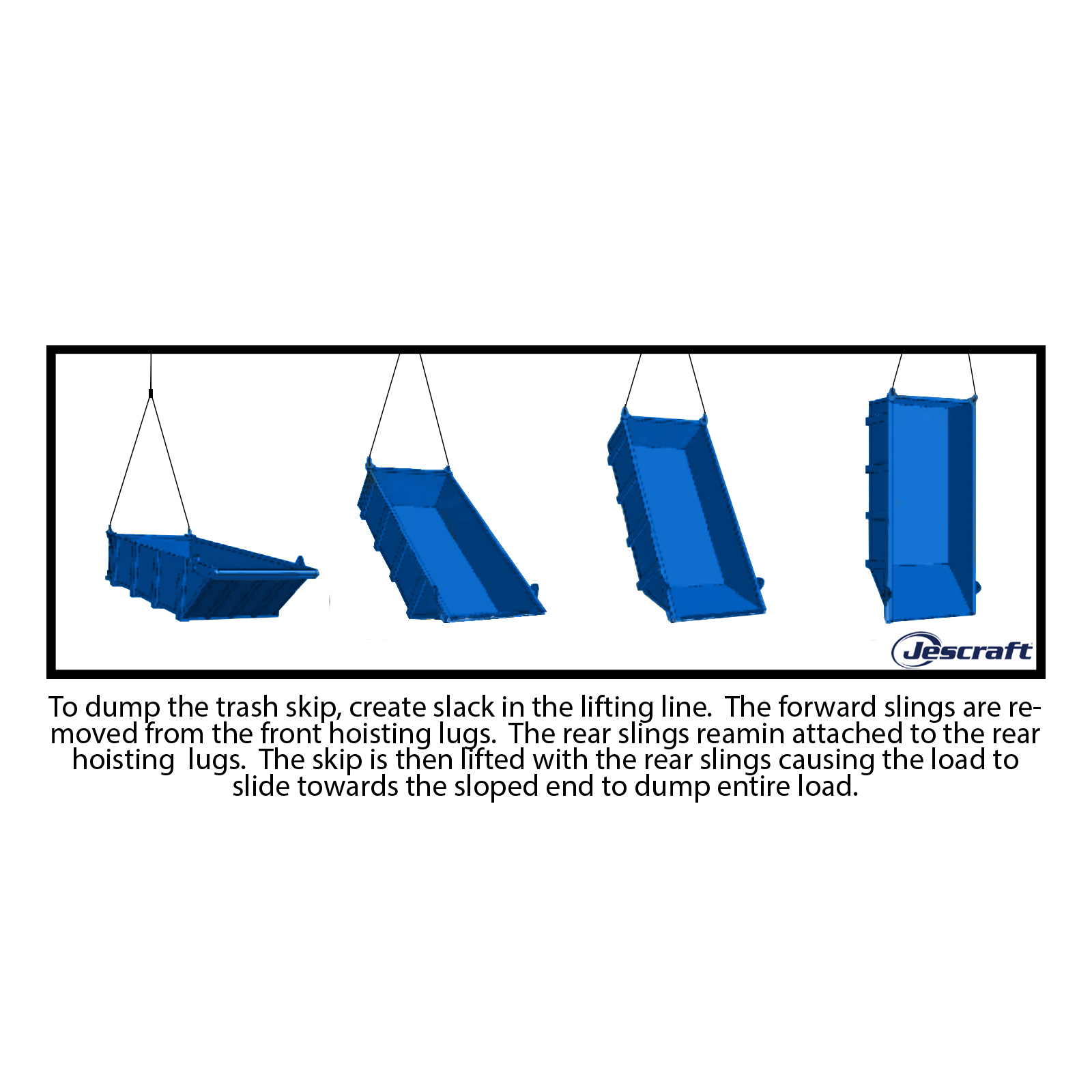 The Trash Skip Container is the perfect choice for the transport and removal of refuse, debris, or bulk material on the jobsite. The container features 4-point hoisting lugs for safe crane lifting and dumping operation. Built to last, this trash skip container is a must for your next project. It easily removes trash and debris from jobsites, creating a safer accident-free work environment.