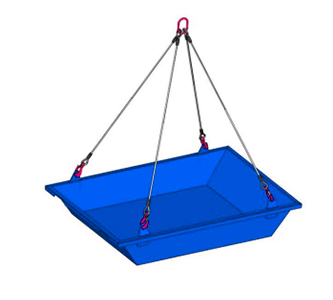 The Trash Tray is the perfect choice for the transport and removal of tear off debris on the jobsite. The tray features 4-point hoisting lugs for safe crane lifting and dumping operation. Built to last, this trash tray is a must for your next project.  Easily remove trash and tear off debris from jobsites, creating a safer accident-free work environment.  A four leg lifting sling is recommended and each lifting leg must be rated in accordance with the Operational Safety and Assembly Instructions.  A four leg lifting sling is included (1/4″ x 5′ Quad Leg Wire Rope Bridle Sling with 1 Ton Alloy Eye Hoist Hooks) and meets the rating in the Operational Safety and Assembly Instructions. Product images shown are for illustration purposes only and may vary from actual products. *Note:  Always distribute load evenly.  When uniform weight capacity is calculated for any product, the capacity is based on the weight being uniformly distributed over the entire usable area.